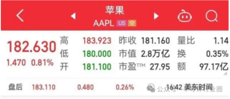 However, market investors welcomed Apple's decision, and Apple's share price rose after the report. At the close of new york stock market, Apple shares rose about 0.81% to close at $182.63.